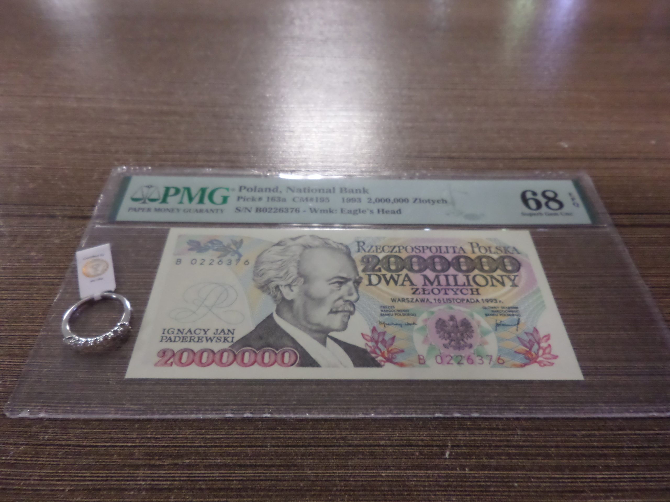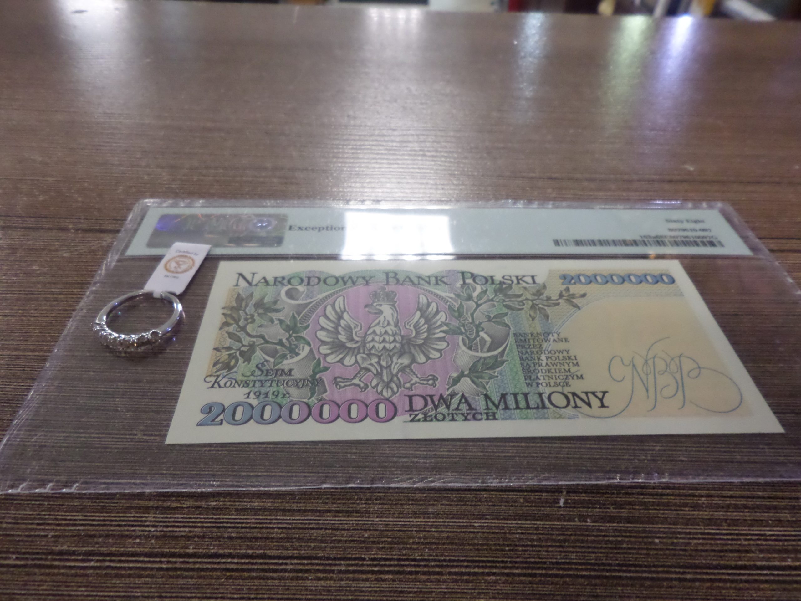 Banknot Rzeczpospolita Polska dwa miliony złotych + złoty pierścionek pr14k